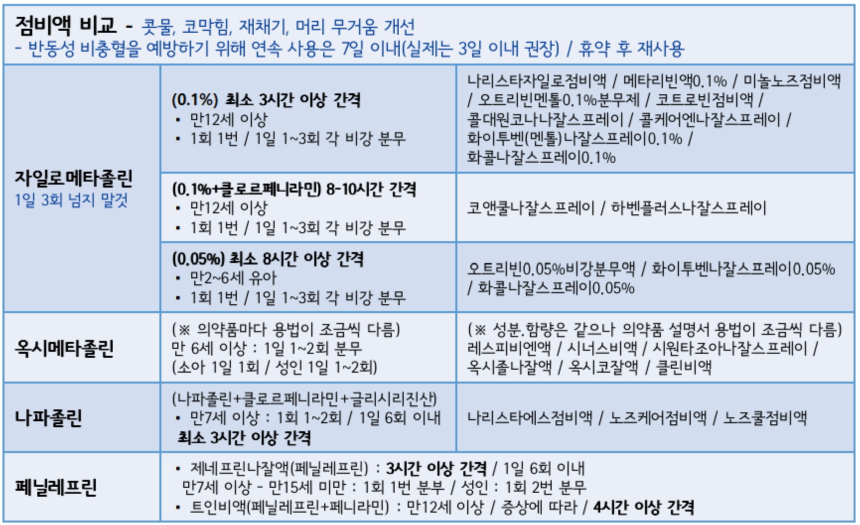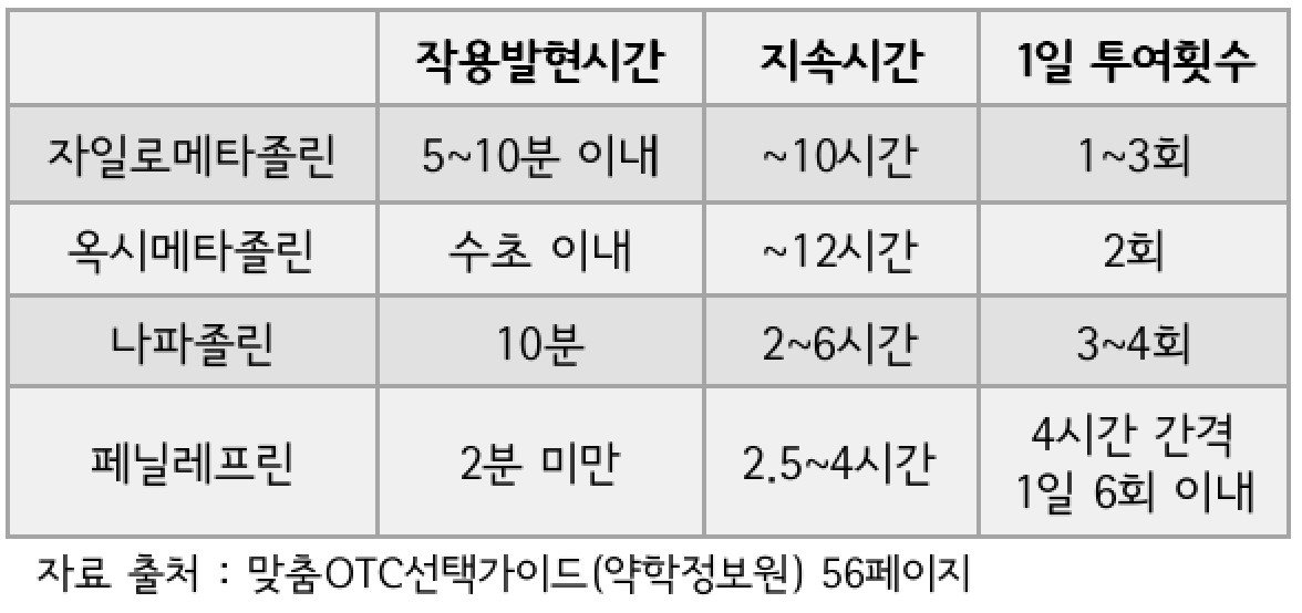 콧속에 뿌리는 약(점비액) 비교