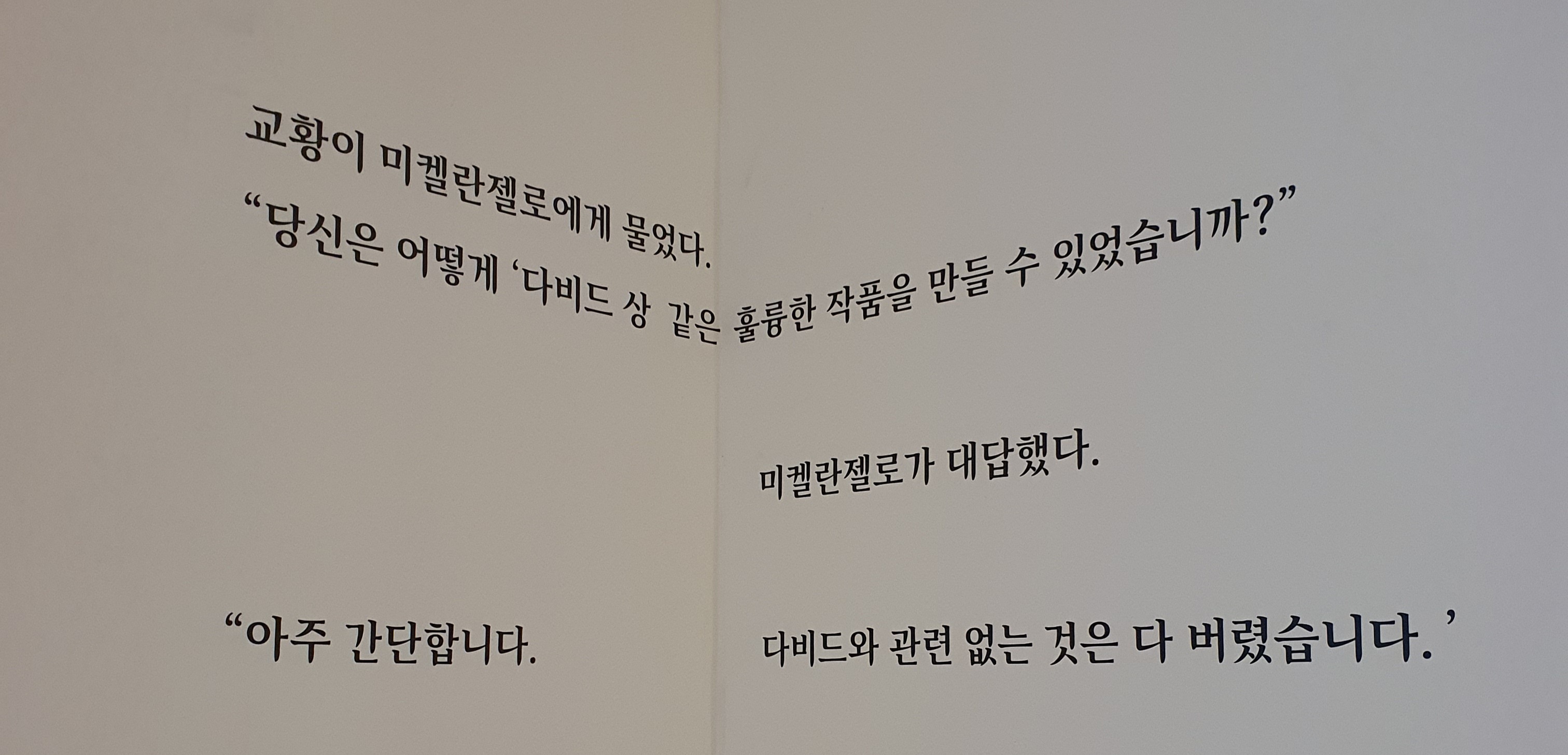 무엇보다 미켈란젤로의 생각을 볼 수 있어 좋았습니다.