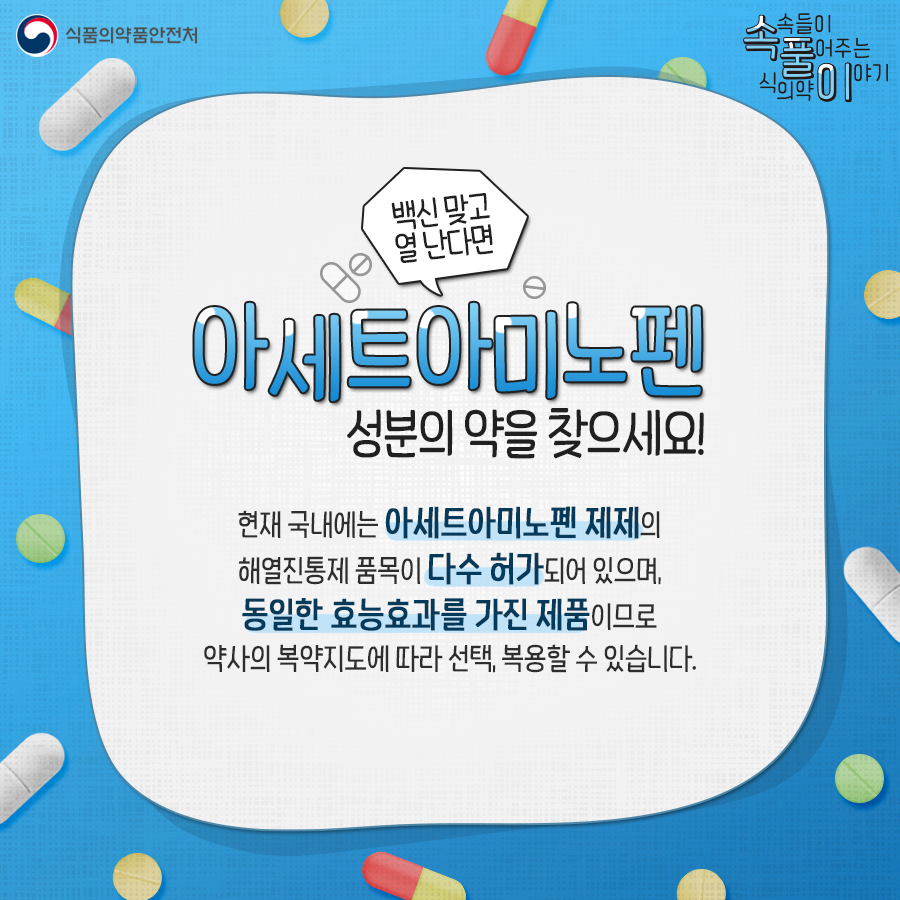 백신 접종 후, 아세트아미노펜이 필요하다면 약국에서 안심하고 구입하시기 바랍니다.
