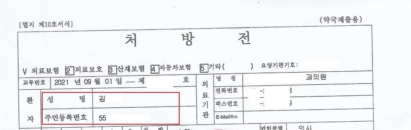 1. 처방전 받으면 내 이름과 주민번호가 맞는지 확인하기